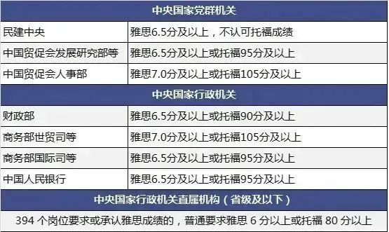 從2017年開始,國考職位開始逐漸承認雅思托福成績,并且要求還都不低,一般都在6.5分或者7分以上。
